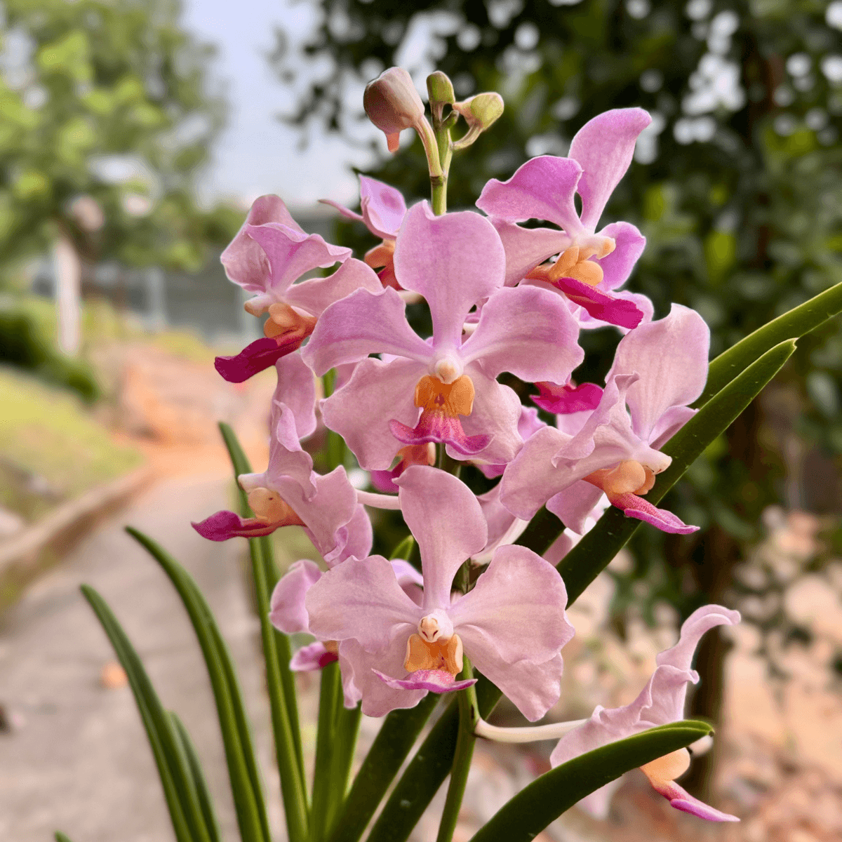 A striking orchid hybrid admired for its soft lavender-pink petals and delicate fragrance. Vanchoanthe Vincent Chiaproduces full, elegant sprays of blooms that capture attention with their subtle gradient of hues and golden-yellow throats. This variety thrives in warm, bright conditions and makes an excellent choice for collectors who enjoy vibrant, long-lasting flowers that bloom multiple times a year.